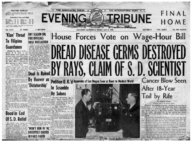 El invento de Rife se convirtió rápidamente en la maravilla del día y fue descrito en detalle en la prestigiosa revista Science. Puedes ver un extracto de dicha publicación de 1928 aquí.